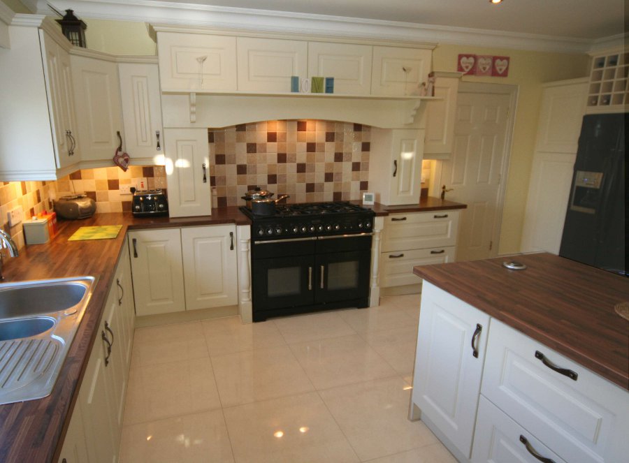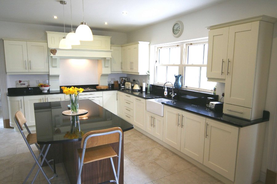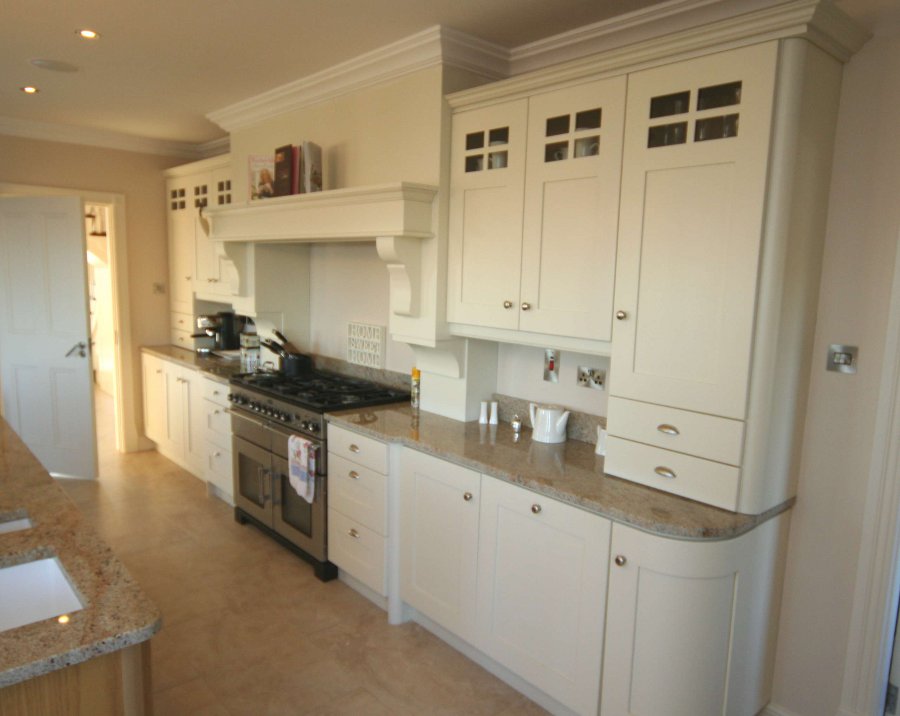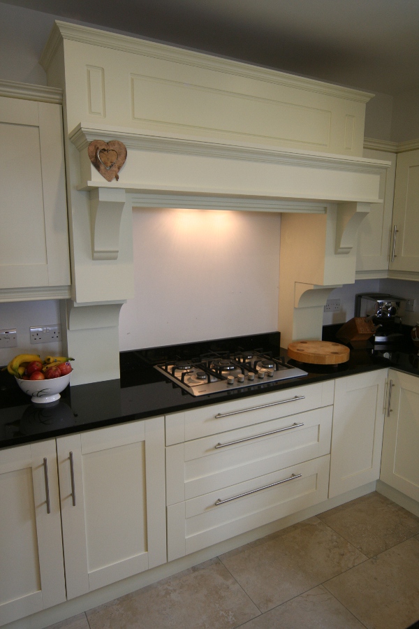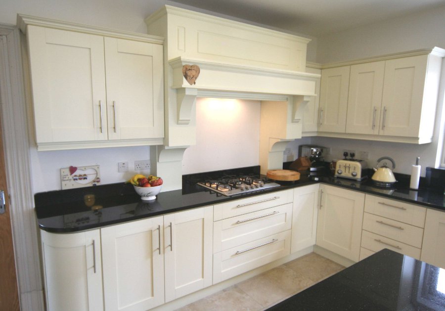 painted in Ivory. The kitchen incorporates bespoke features such as the canopy and the