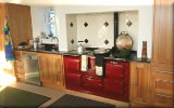 granite worktop. The red Aga adds colour and fun to the scheme.
