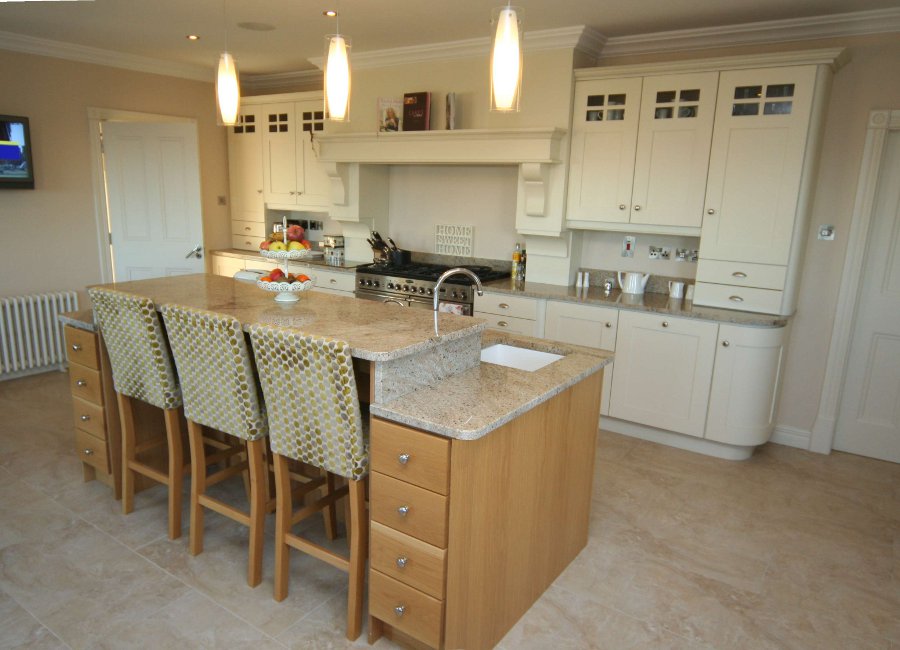 of oak on the island which complements the Ivory painted kitchen. A truly bespoke design.