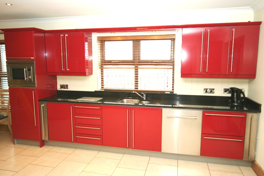 The client choose this red gloss kitchen for its stunning presence and drama.