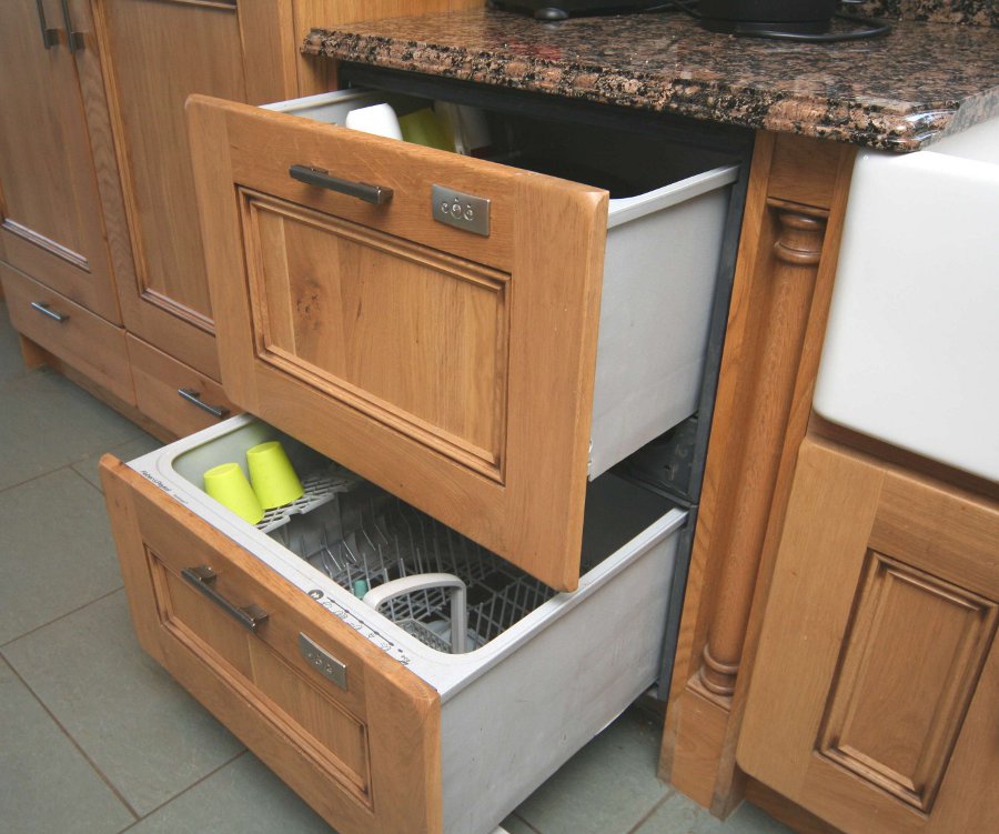 incorporated with the baltic brown granite worktop and integrated dishdrawers.