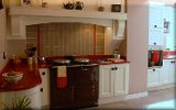 appliances add contrast. The bespoke canopy over the solid fuel cooker creates feature.