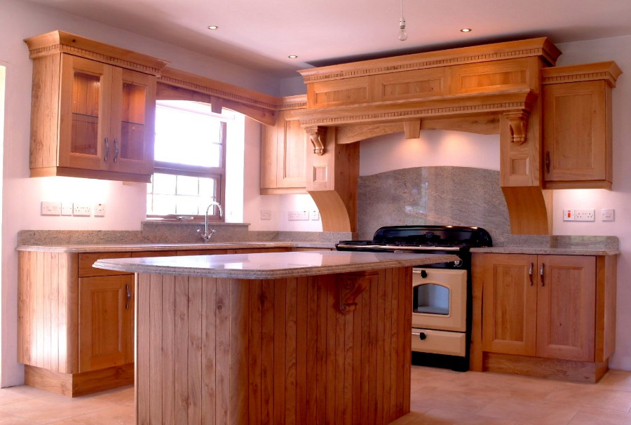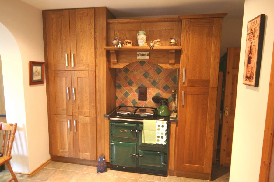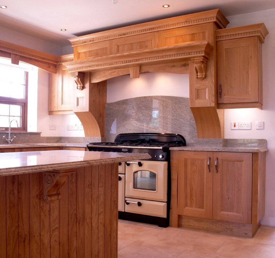 This Solid Character Oak kitchen features a bespoke canopy over the hob and wide